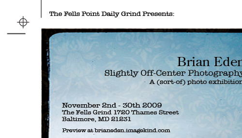 After visiting the Daily Grind in Fells Point for approximately 3,285 consecutive mornings and singlehandedly putting the owner’s children through college, I’m very excited to say that I’ve finally worn them down and convinced them to let me hang my photography on the walls for my first ever (sort-of) photography exhibition.